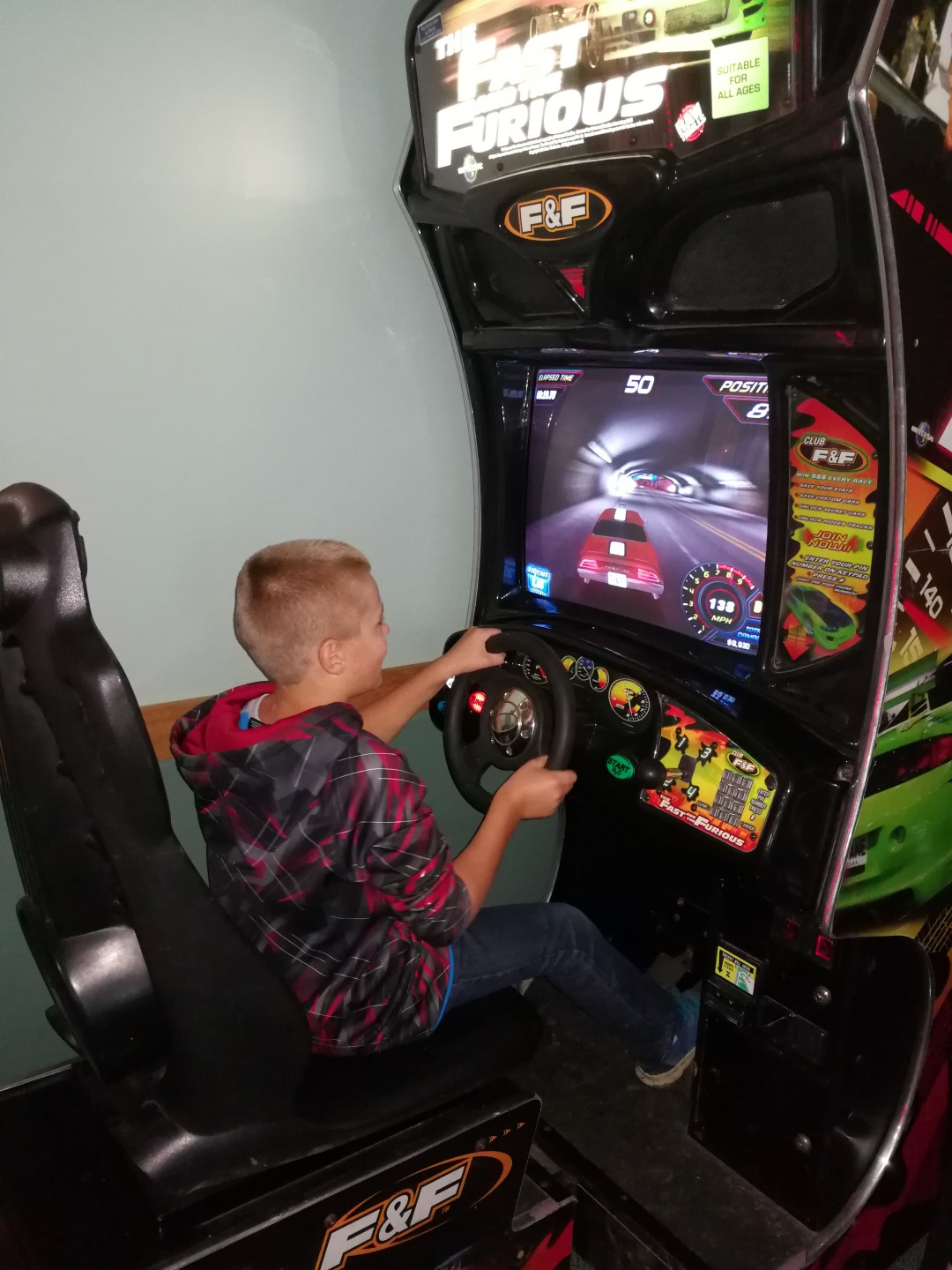 We took a tractor pulled hay ride around the campground later in the day and played a few games in the small arcade.  Saturday evening some heavy rain came through, so when it got too bad to stay under the awning, we spent the evening playing cards and watching a movie in our camper.