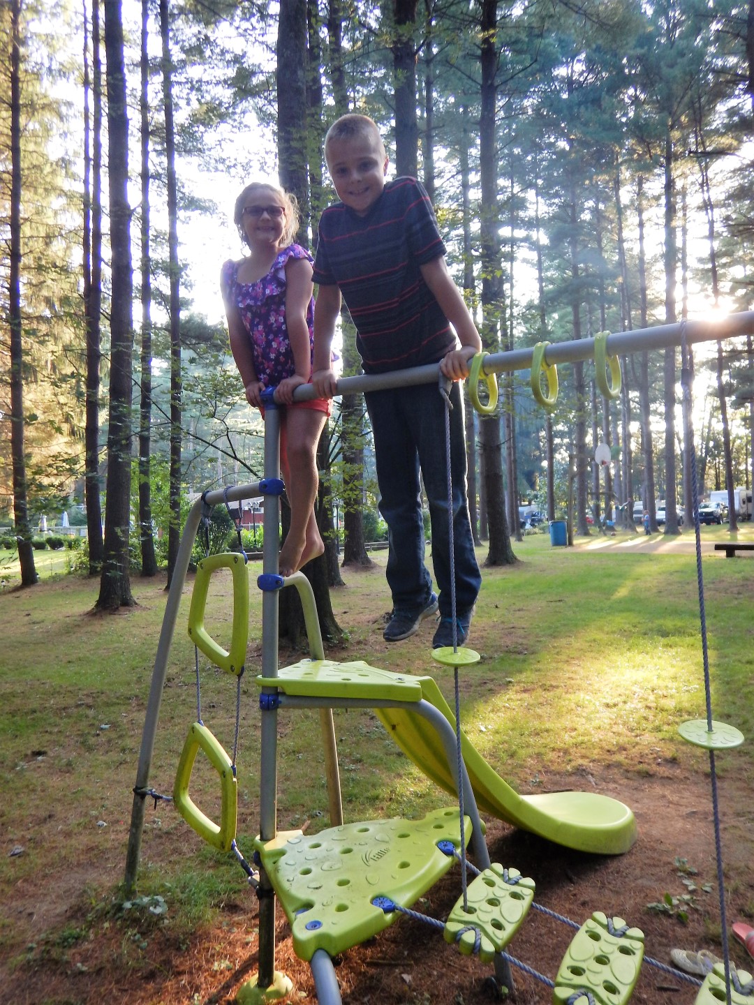 After helping setup camp our children went to check out the playground.  For dinner Friday we order pizzas from Mary’s Pizza.  Mary’s is about a 15-minute drive away in downtown Lisbon.  The pizzas at Mary’s are delicious.  They are the thickest heaviest pizzas I have ever had.  1 or 2 slices is about all you can eat.  After dinner we relaxed around the fire for a while.  I’m happy to say that the fire wood we purchased from the campground started easily and burned nicely.